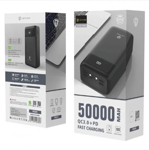 УМБ зарядний Power Bank Lenyes PX591 50000mAhr — це компактний портативний зарядний пристрій місткістю 50000 мА·год створений за найпередовішими технологіями.