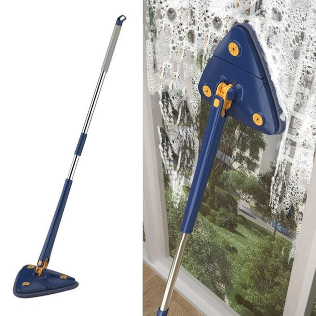 Висувна трикутна швабра з обертанням 360°, телескопічна ручка, насадка з мікрофібри